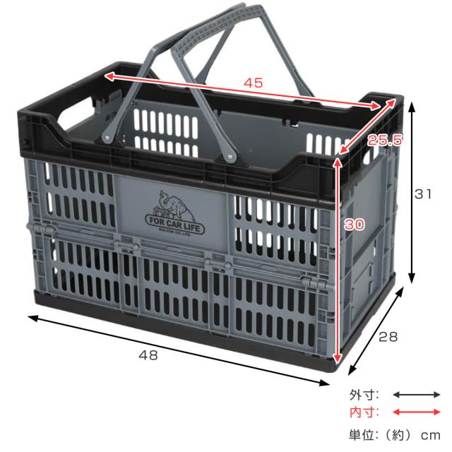 | サイズ | 外寸:約 幅48×奥行28×高さ31(cm) 内寸:約 幅45×奥行25.5×高さ30(cm) |