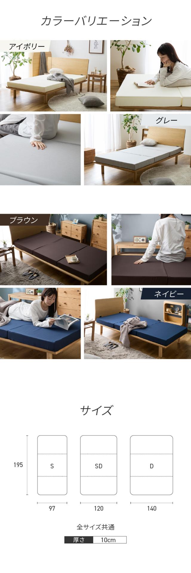 ★クーポンあり★ マットレス 折りたたみ ダブル 洗える3つ折りマットレス D 全4色 マットレス 折りたたみ ダブル 三つ折り 洗える 高反発 ウレタンマットレス 3つ折り 清潔 丸洗い 送料無料