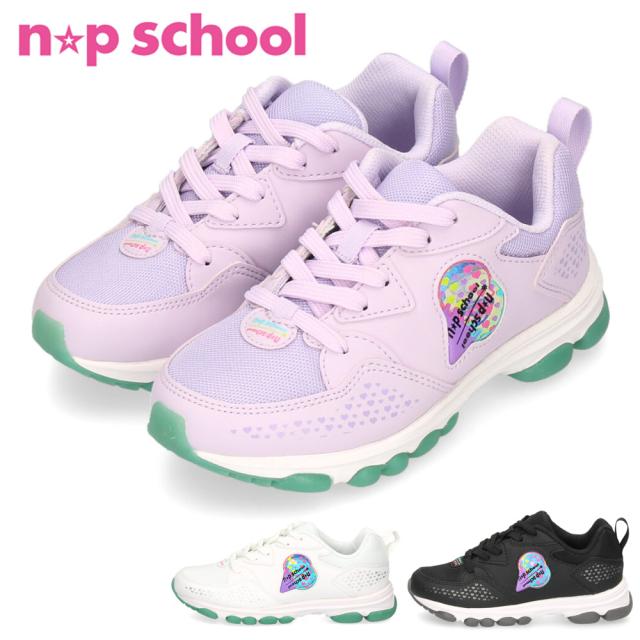 ニコプチ n★p school キッズ スニーカー NPS 0530 ホワイト ブラック 黒 ラベンダー ガールズ 通学 かわいい 運動靴 子ども