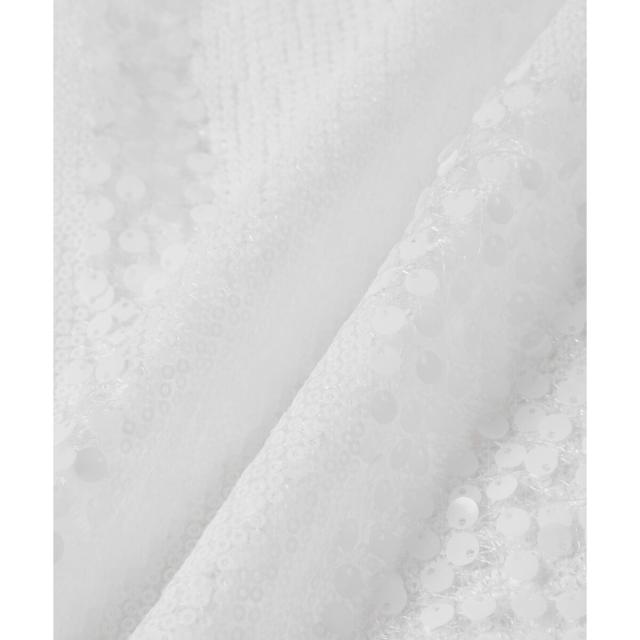 スパンコールに動きを出すため2種類のスパンコールを使用。生地に添う中心開きのスパンコールと、上に開きのある揺れるスパンコールが儚い女性らしさを演出。
