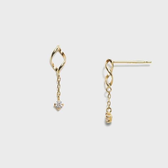 キュービックジルコニアが耳元で可憐に揺れるピアス。ひねりを加えた地金パーツの艶やかな輝きとキュービックジルコニアならではの華やかな煌めきがポイント。顔の動きに合わせてチェーンがちらちらと揺れる、可憐な表情が魅力のピアスです。※シリコンキャッチ付き。※手曲げの加工の為、形状に個体差があります。※天然石や天然素材を使用しているものは、サイズ・色味・風合いの違いや、若干の傷、内包物の有無などに個体差があります。予めご了承ください。