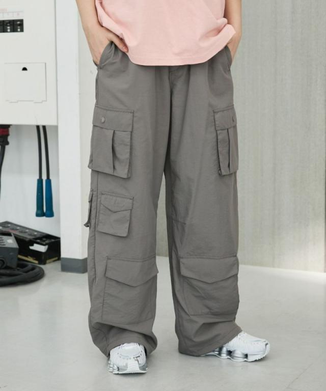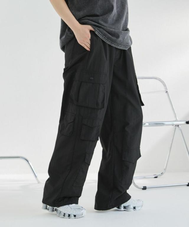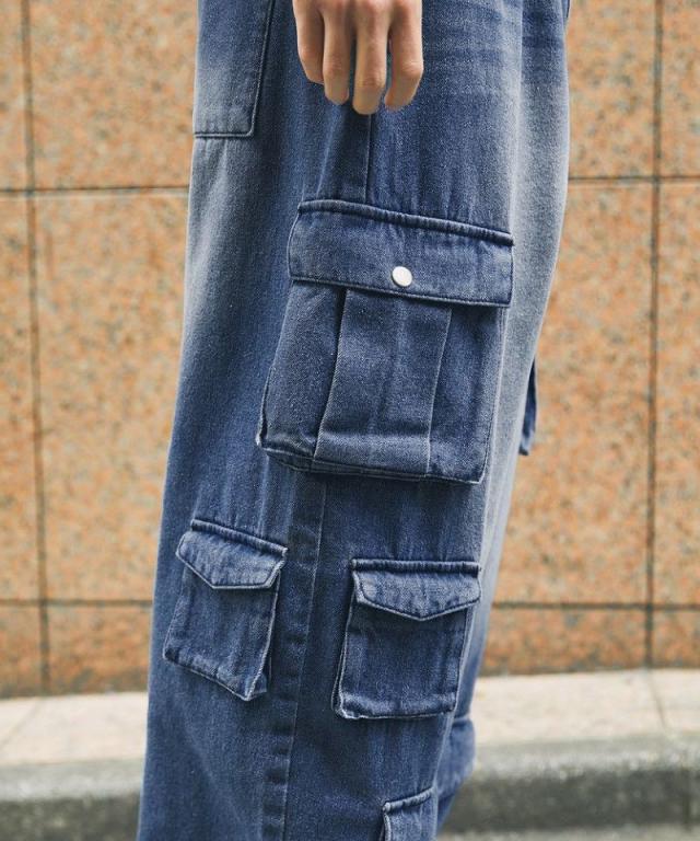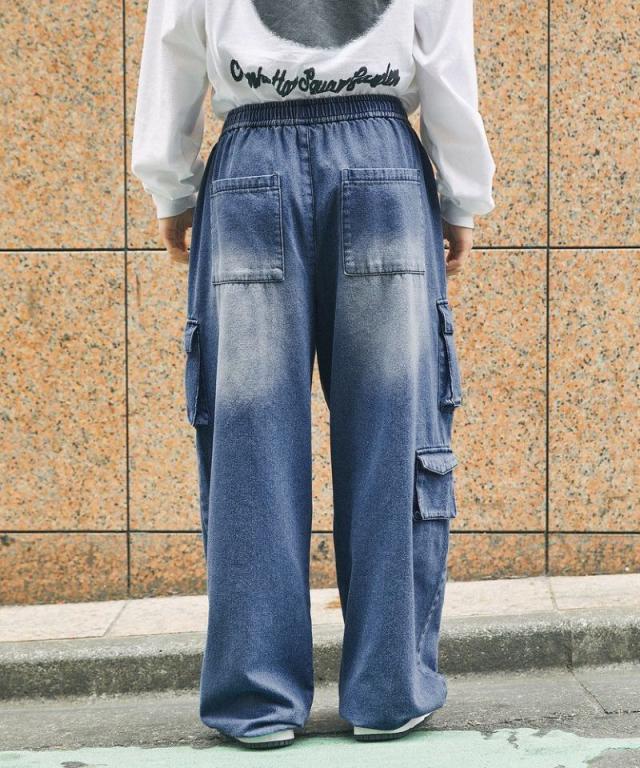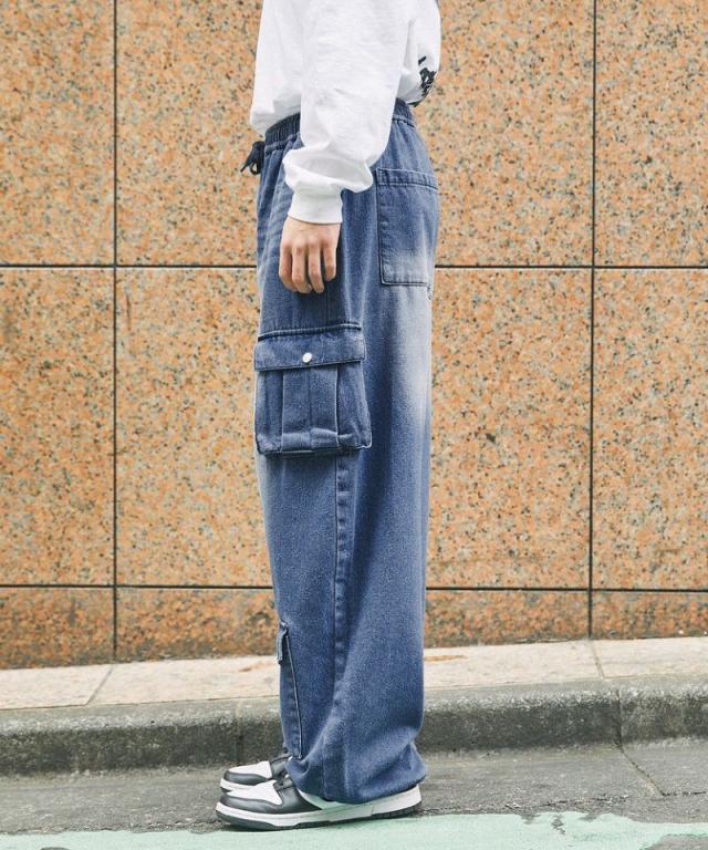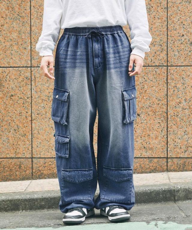 ナイロン/デニムマルチポケットドレープバギーカーゴパンツ
