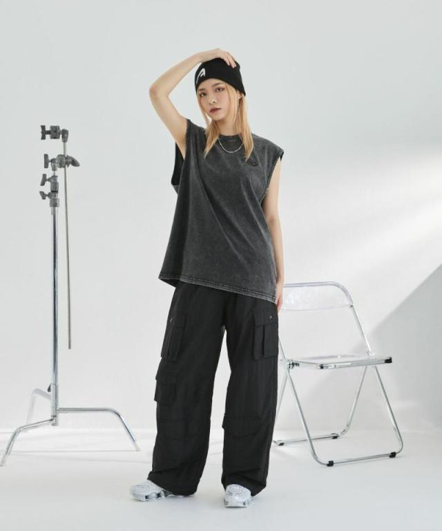 裾のドローコードで裾幅の調節ができるので、ワイドストレート・バルーンシルエットの2wayで着こなしが可能。