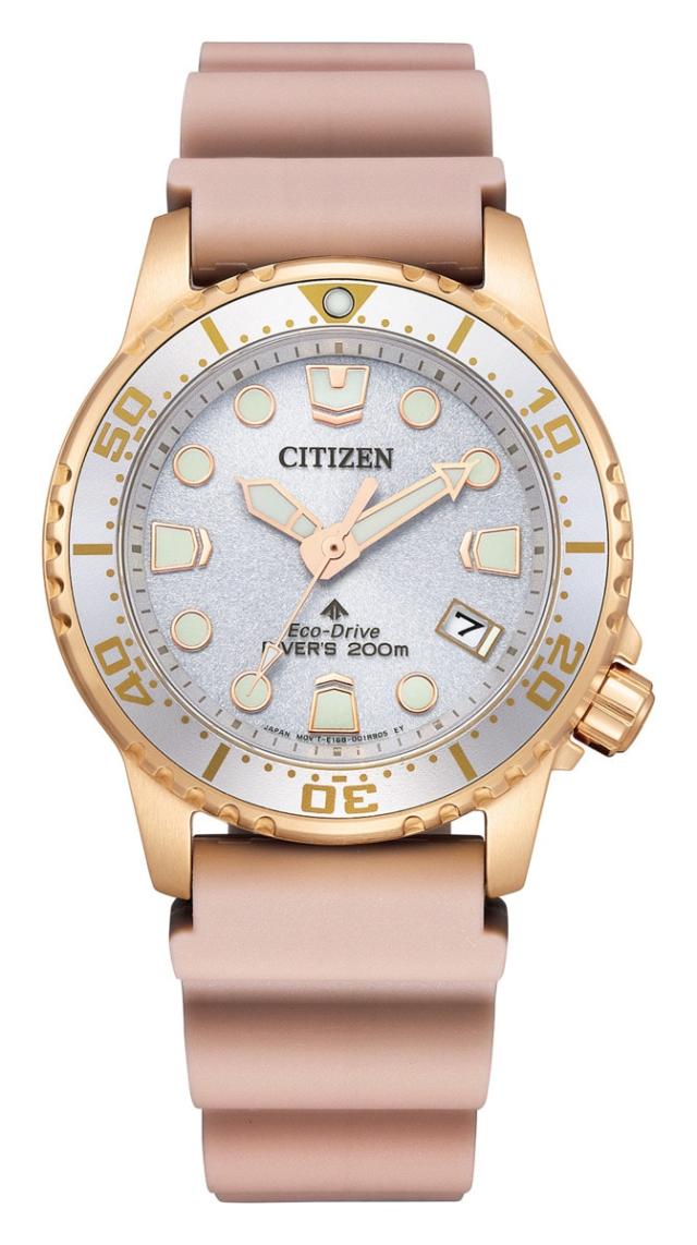普段使いでも活躍するスポーティーなデザイン。文字板はブラック、シルバー、ブルーの3色展開。シルバー文字板は、ウォームゴールドを合わせたケースとピンクのバンドが華やかな印象を演出します。