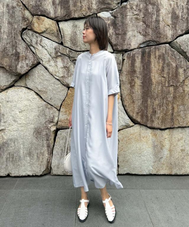 シャープな印象で着ていただけるシャツワンピース。