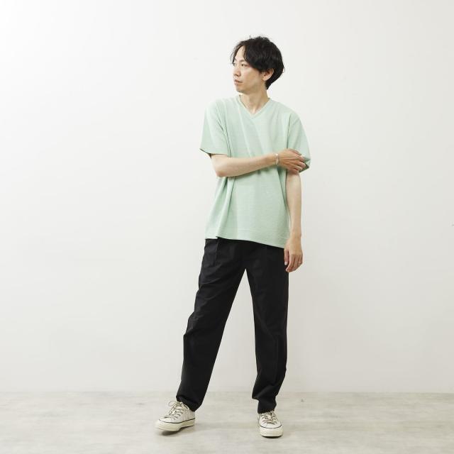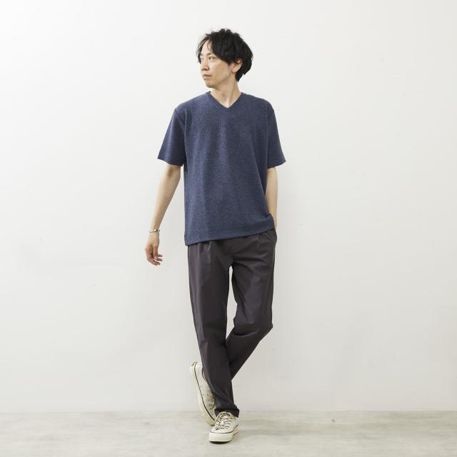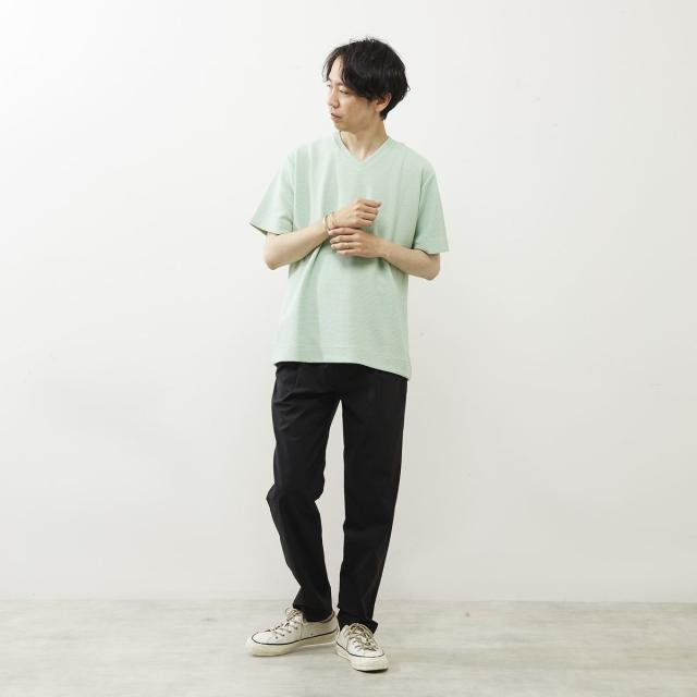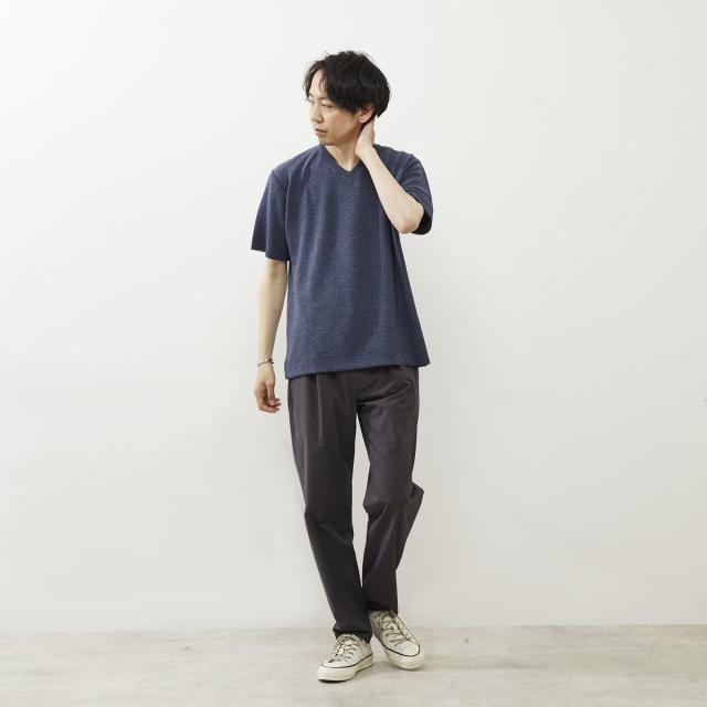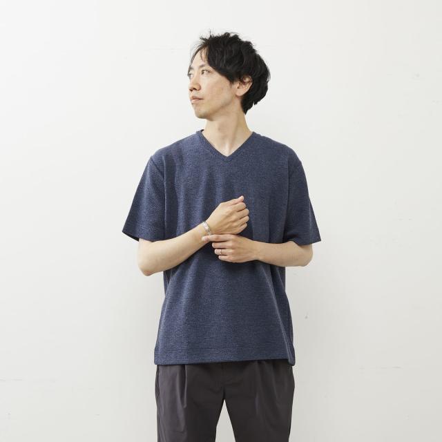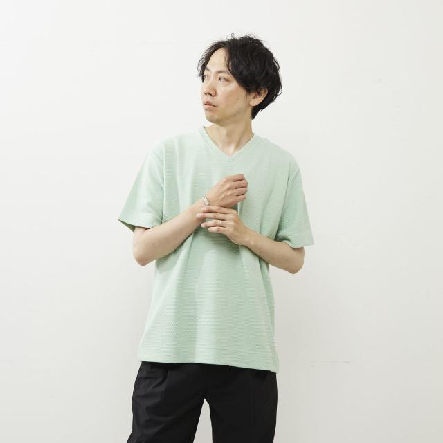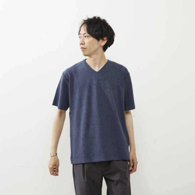 シュリンクジャガードVネックTシャツ