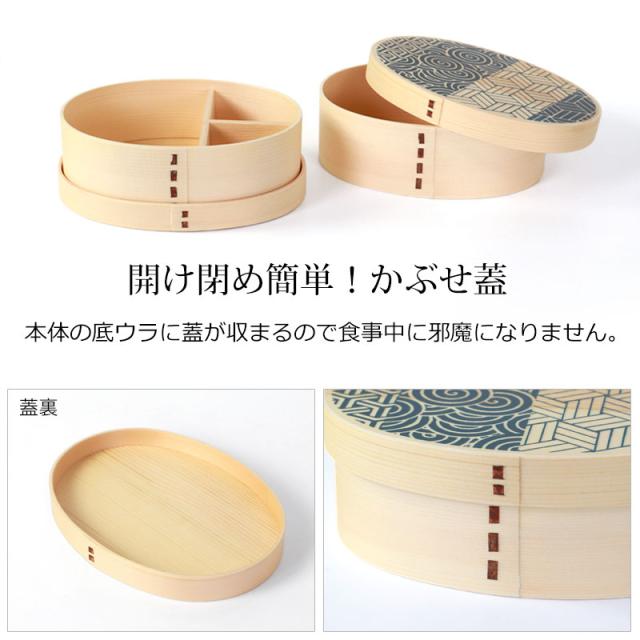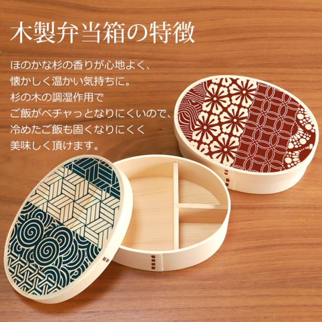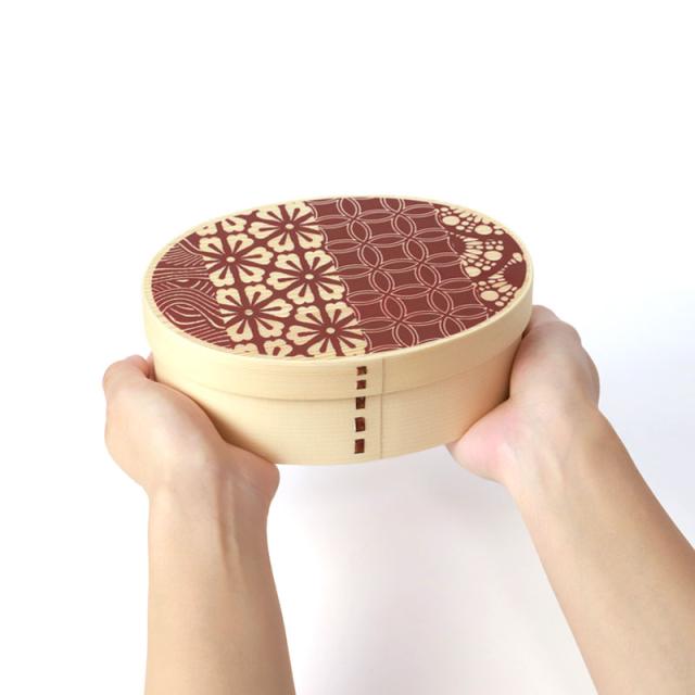 2色から選べる日本の伝統模様の曲げわっぱ弁当箱。