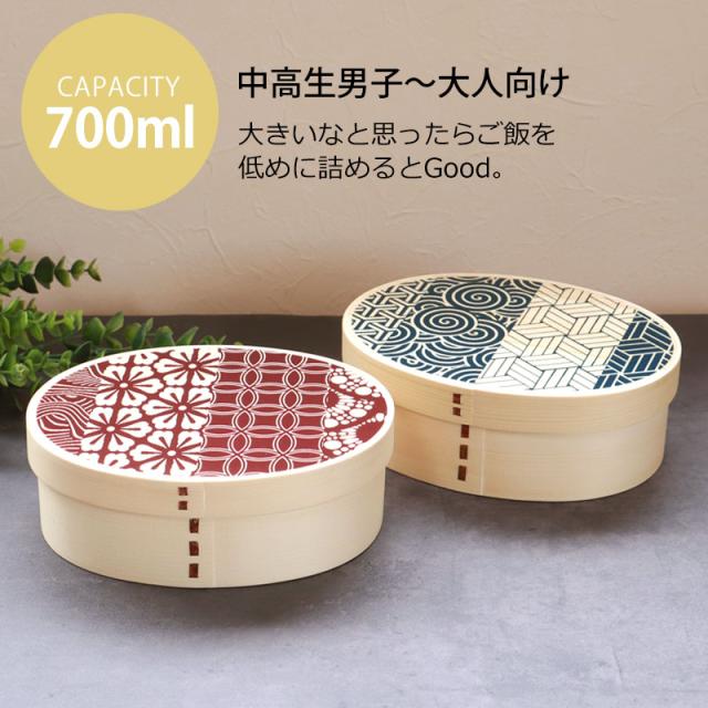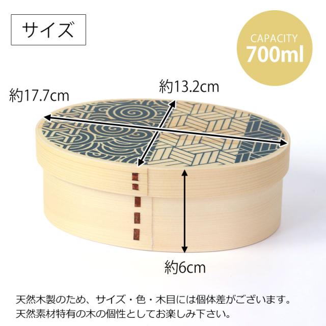 曲げわっぱ 弁当箱 700ml 平安 雅 まげわっぱ お弁当箱 小判型 おしゃれ 一段 曲げわっぱ弁当箱 かわいい 曲げワッパ 小判 和柄 木製 1段 メンズ ランチボックス 伝統模様 大人 朱 青 男子 女子