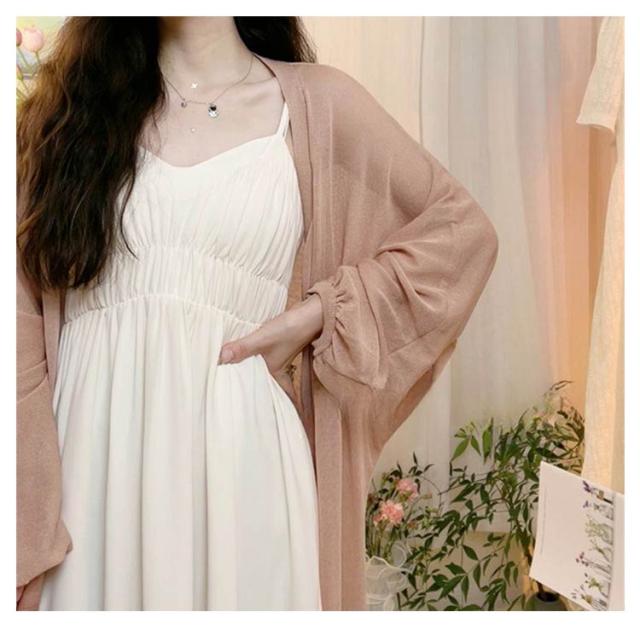 長袖 サマージャケット サマーカーディガン レディース サマー カジュアル 夏 ゆったり UVカット 日焼け防止 ロングカーディガン 薄手 羽織り アウター 紫外線対策 UVカット 冷房対策 オフィス シアー 無地 透け サマーニット ニットカーデ シンプル