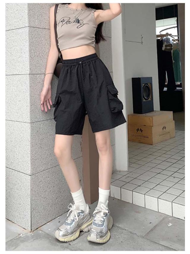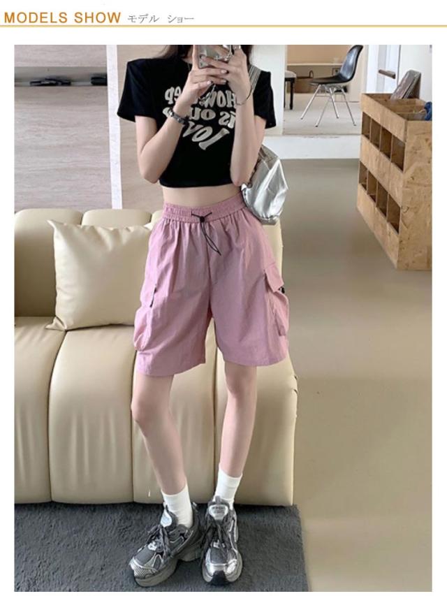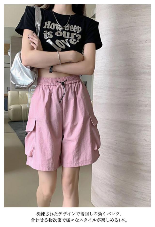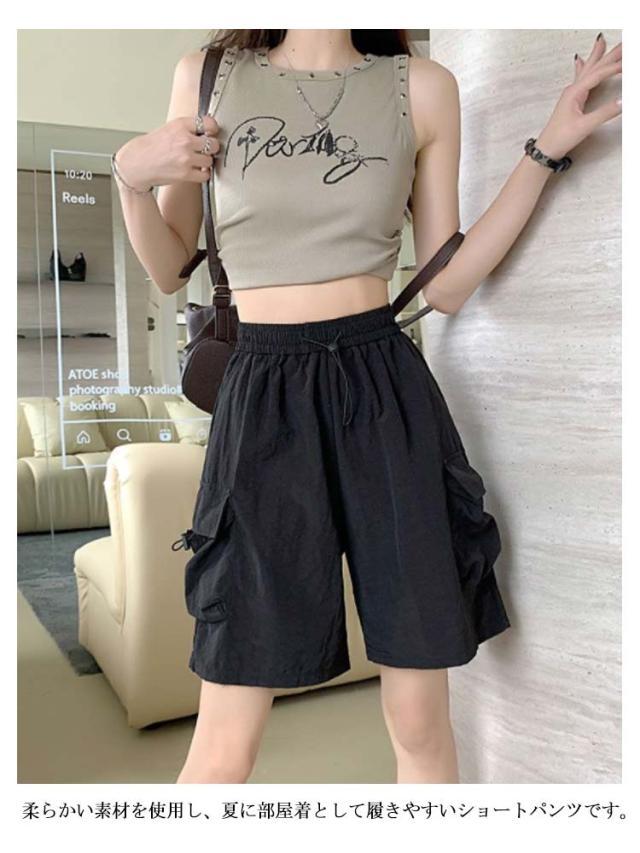ショートパンツ アメリカ風 ショーパン ミリタリー風 レディース ゆったり ハーフパンツ 短パン ボトムス ワインパンツ 春夏 涼しい カーゴパンツ パンツ 冷感 カーゴショーツ 膝丈 カーゴパンツ 半ズボン 無地 ウエストゴム ボトムス 大きいサイズ カジュアル アウトドア