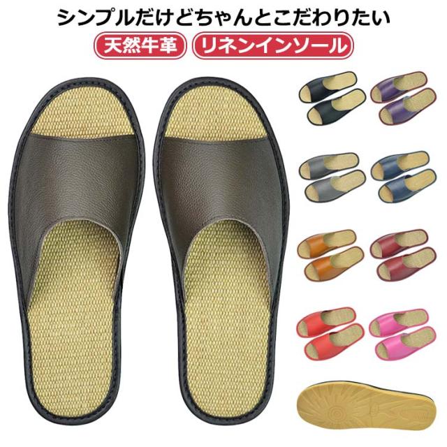 メンズ スリッパ メンズ レディース ルームシューズ 滑り止め 夏用 スリッパ 本革 レディース 麻 本革 疲れない 夏 レザールームシューズ メンズ リネン レザー ルームシューズ 高級 前開き スリッパ 夏用 おしゃれ