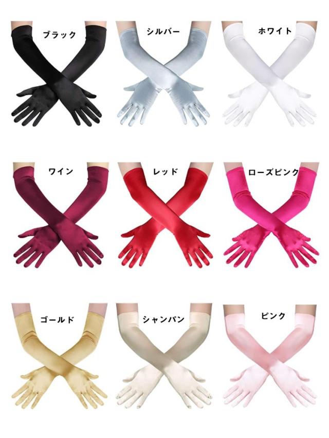 全18色 手袋 グローブ ウェディング シンプル グローブ ウェディングドレス ウェディング ステージ ロング 演奏会 サテン 結婚 挙式 ロンググローブ カラードレス パーティー ウェディング 舞台 ウェディンググローブ 白 黒 赤 黄