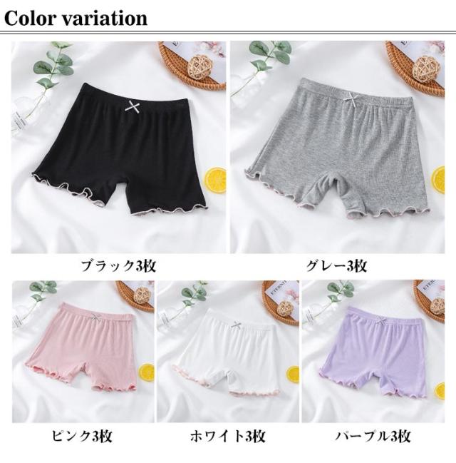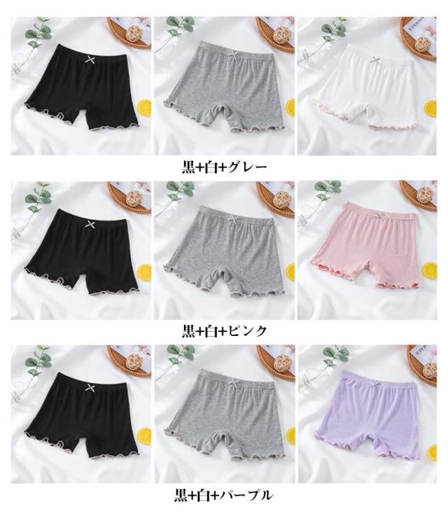 3枚セット 女の子 スパッツ 3分丈 オーバーパンツ キッズ 子供 下着 ショーツ インナーウエア ジュニア 子ども かわいい オーバーパンツ キッズ ペチパンツ インナーパンツ 幼稚園 保育園 小学生 ペチコート アンダーパンツ 通学 通園 フリル 裾