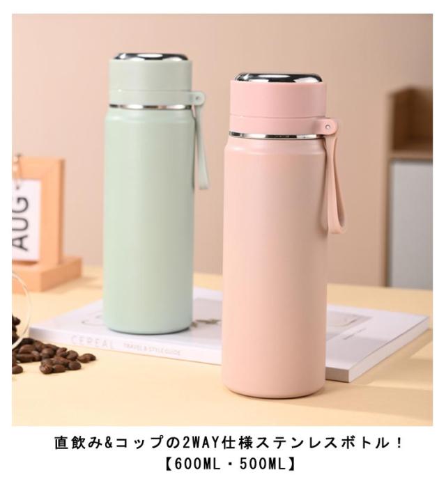 | 直飲み&コップの2WAY仕様ステンレスボトル!【600ml・500ml】 真空断熱ステンレス構造なので保温保冷力抜群! ワンタッチの簡単オープンなので飲みたい時にすぐ飲めます。 広口構造だから洗いやすく氷を入れやすいのが嬉しいポイント。 ストラップがついているのでそのまま持ち運べます。 通学通勤時、遠足、運動会などの行事に、また行楽やキャンプにとあらゆる分野での水分補給に! かわいいデザインで年代問わず幅広くお使いいただけます♪ | |