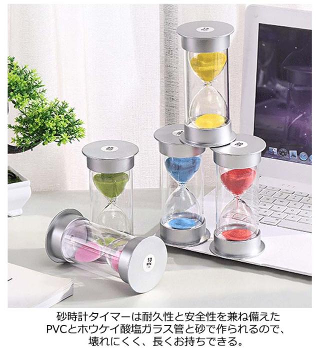 | 7色 5分 10分 15分 20分 30分 45分 60分 子供の食事、研究実験、運動、勉強、ゲーム、ヨガ、料理、お風呂などタイミング用の砂時計 砂時計タイマーは耐久性と安全性を兼ね備えたPVCとホウケイ酸塩ガラス管と砂で作られるので、壊れにくく、長くお持ちできる 忙しい毎日の中でも時間の大切さを再確認させてくれそうなインテリアグッズ | |
