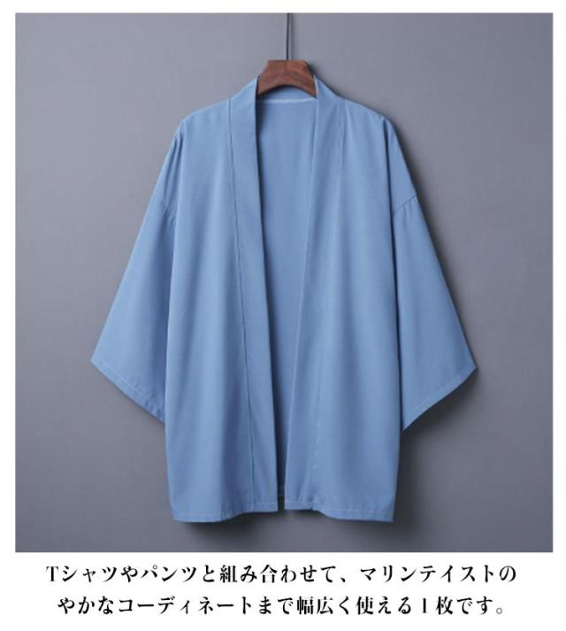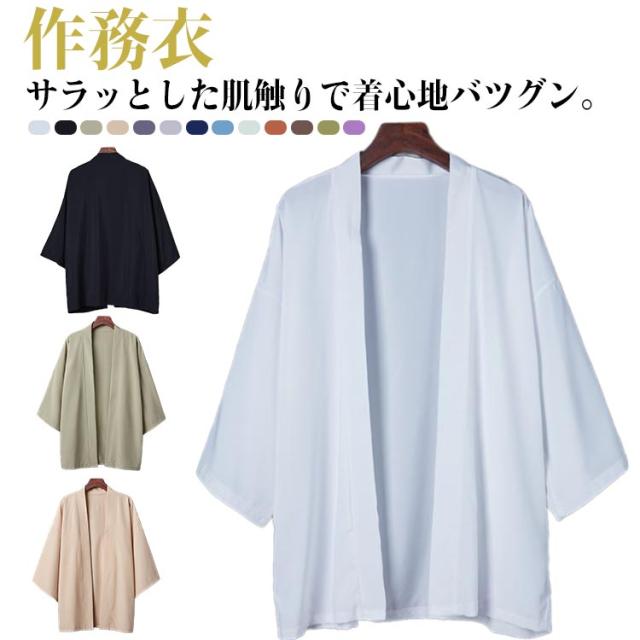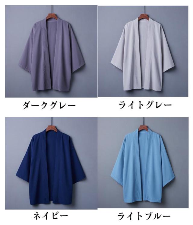 作務衣 メンズ 法被 開襟シャツ 半袖 五分袖 夏服 和式 羽織 半纏 夏 甚平 トップス 和風 夏祭り 半被 カーディガン 和式 はっぴ ゆったり カジュアル 重ね着風 かっこいい 作務衣 浴衣 和服 着物 七分袖