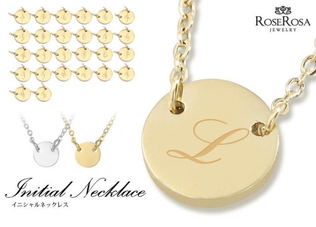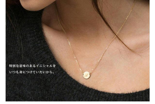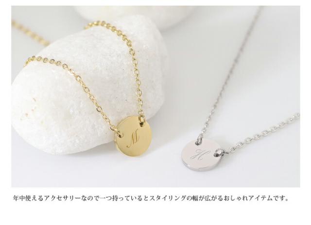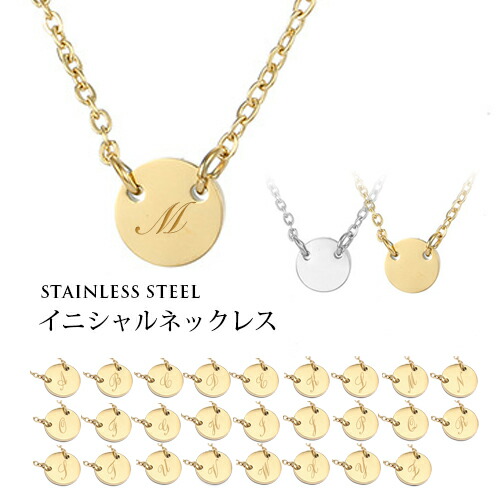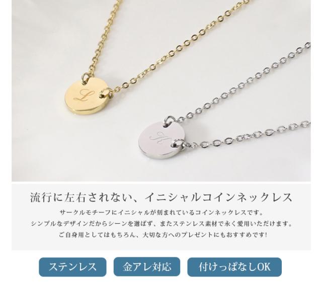 イニシャル コイン ネックレス 2色 ステンレス ペンダント コインネックレス 小豆チェーン シルバー ゴールド