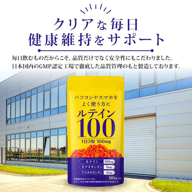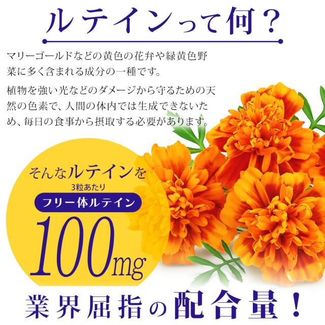 【業界屈指の配合量】フリー体 ルテイン100mg配合。毎日のクリアをサポート