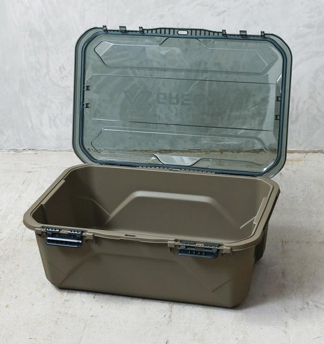アウトドアギアの整理整頓に革命をもたらす収納ソリューションALPACA GEARシリーズの、蓋付き収納ボックス。耐久性のある50%リサイクル素材で作られ、蓋とラッチはポリカーボネート製。フリップフロップのヒンジ付き蓋で、防水性と防塵性に優れ、ギアを乾いた状態に保ち、保護してくれます。(ウォータージェット試験合格、およびIP65基準の防水性・防塵性認定)中身が確認しやすく見た目にも美しいクリアビューの上蓋は、両側から開けられるヒンジ設計。衝撃にも強く、洗浄の際や雨天時も、蓋から排水するつくりです。蓋内側にガスケットシールを使用しており湿気やホコリから保護します。荷物を積んだときに激しい衝撃に耐えるように設計されたサイドグラブハンドル付きの成型底部。スタッキング設計により、複数のボックスをきれいに積み重ねることが可能になっています。