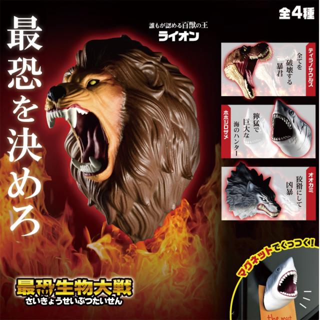 【4種類セット】 ガチャ ガチャガチャ コンプリート おもちゃ 中身 おもしろ マグネット [ 最恐生物大戦 ] オオカミ ホオジロザメ ティラノサウルス ライオン