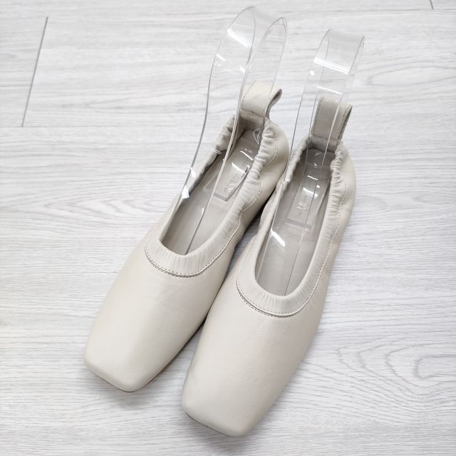 MANITA マニータ 新品 ギャザーバレエシューズ レザーパンプス サイズ7 バレエシューズ オフホワイト レディース【中古】4-0518G◎