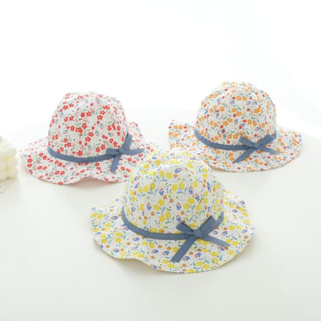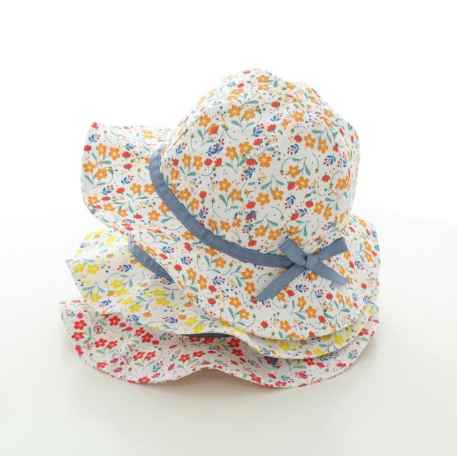 ベビー帽子 夏用 女の子 日よけ 日除け帽子 赤ちゃん 花柄帽子 ハット 日よけ 綿 日除け ベビー 首日よけ UVカット 夏 帽子