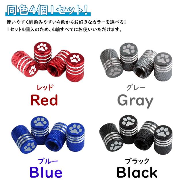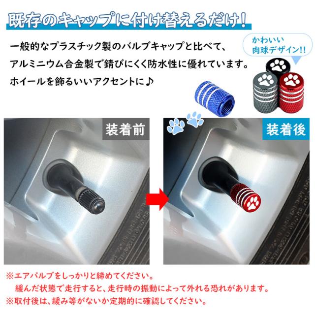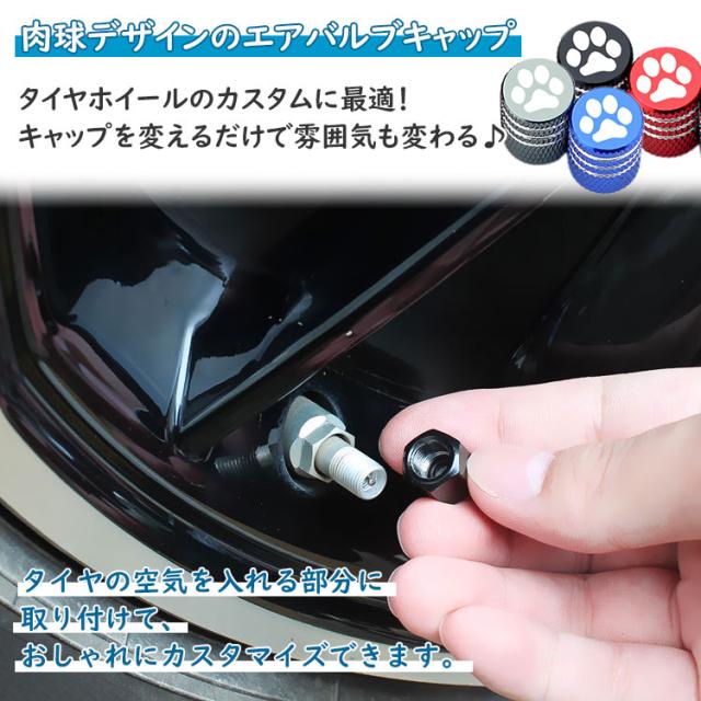 バルブキャップ エアバルブキャップ 4個入り タイヤ ホイール 車 バイク カスタム 肉球