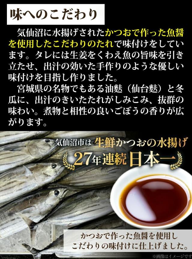 めかじき(国産)、冬瓜、ごぼう、醤油(大豆・小麦を含む)、砂糖、還元水あめ、発酵調味液、油麩、おろししょうが、魚醤、黒糖蜜、食塩、黒酢、みりん/酒精、調味料(アミノ酸)、pH調整剤、グリシン、酢酸Na、カラメル色素
