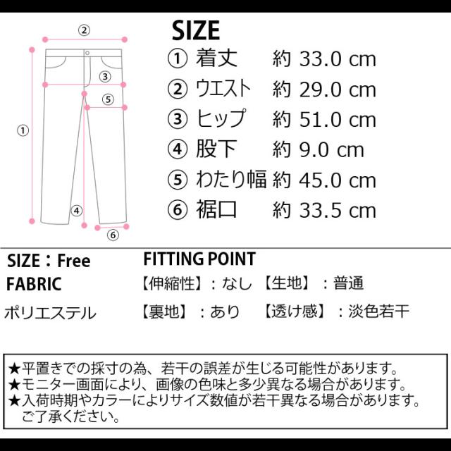 ■サイズ:着丈33cm ウエスト29cm ヒップ51cm 股下9cm わたり幅45cm 裾口33.5cm