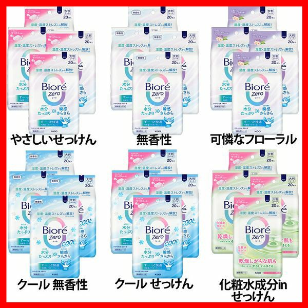 【4個】制汗シート 花王 ボディシート まとめ買い ビオレZeroシート 20枚入 KAO 全6種類 大判シート 顔・からだ用 瞬間さらさら デオドラント 暑さ対策 外出時 レジャー スポーツ