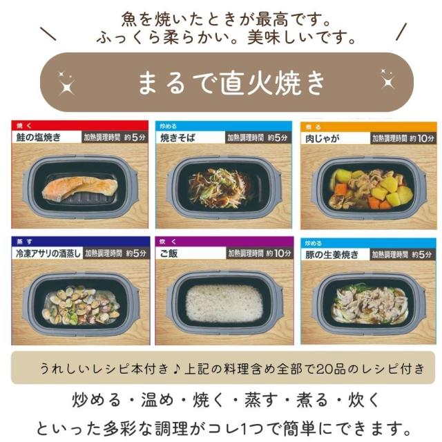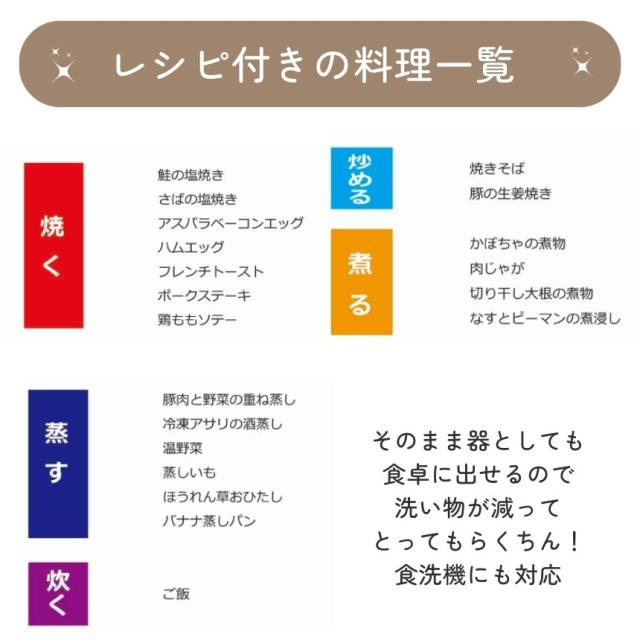 焼く・炒める・煮る・蒸す・炊く・温める等の調理方法が可能な1台6役♪