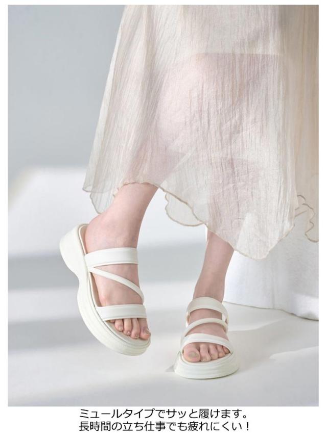 厚底ミュール 美脚ミュール オフィスサンダル サンダル レディース スポーツサンダル スポサン 厚底 つっかけ フラット ローヒール ストラップ コンフォート ミュール 事務所履き 仕事履き ベランダー履き 立ち仕事 室内 OL 痛くない 浴衣 サンダル