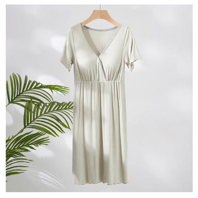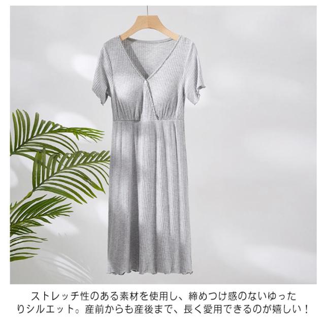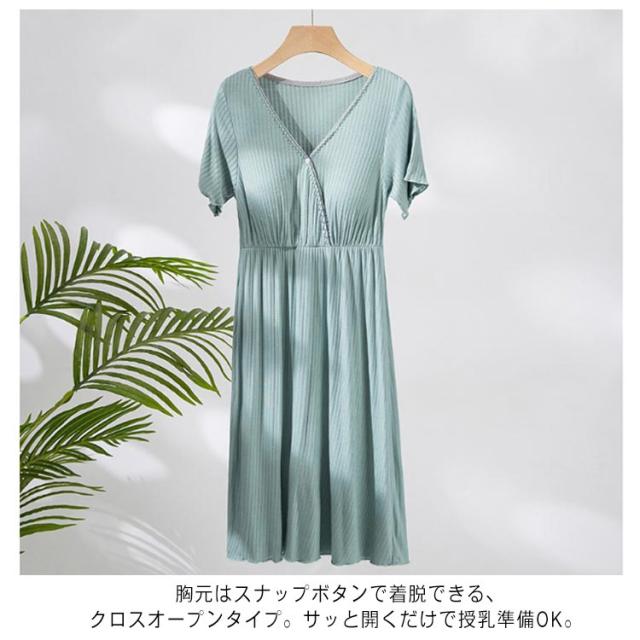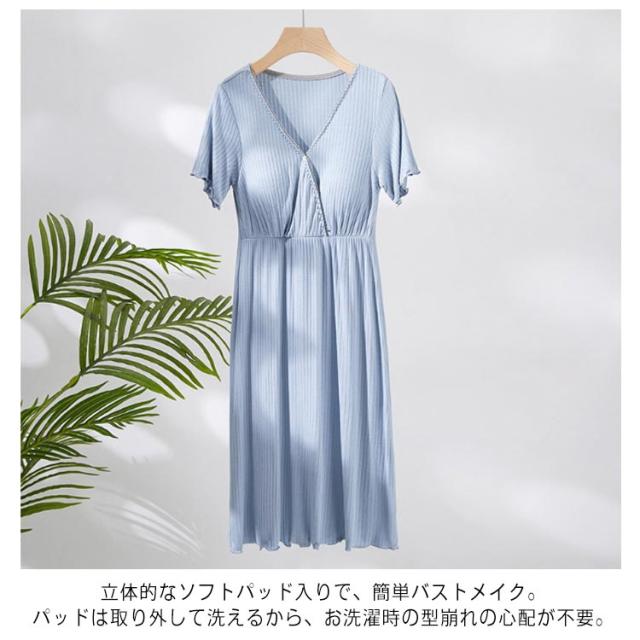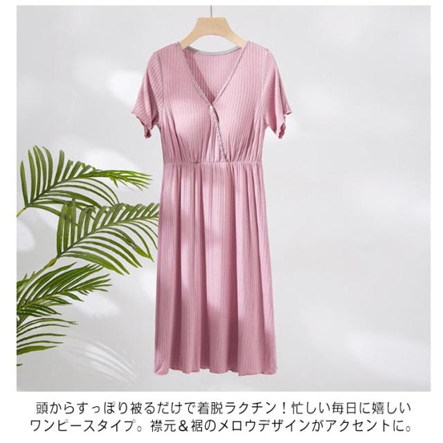 送料無料 マタニティ パジャマ 前開き 春夏 授乳服 ママ ワンピース 半袖 授乳口付き 妊婦服 妊婦 マタニティウェア ルームウェア 寝巻 産前 産後 授乳 出産 入院 準備 Vネック ボタン付き パッド付 ワンピ 柔らかい 吸湿 通気 おしゃれ