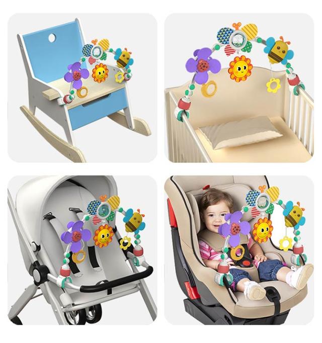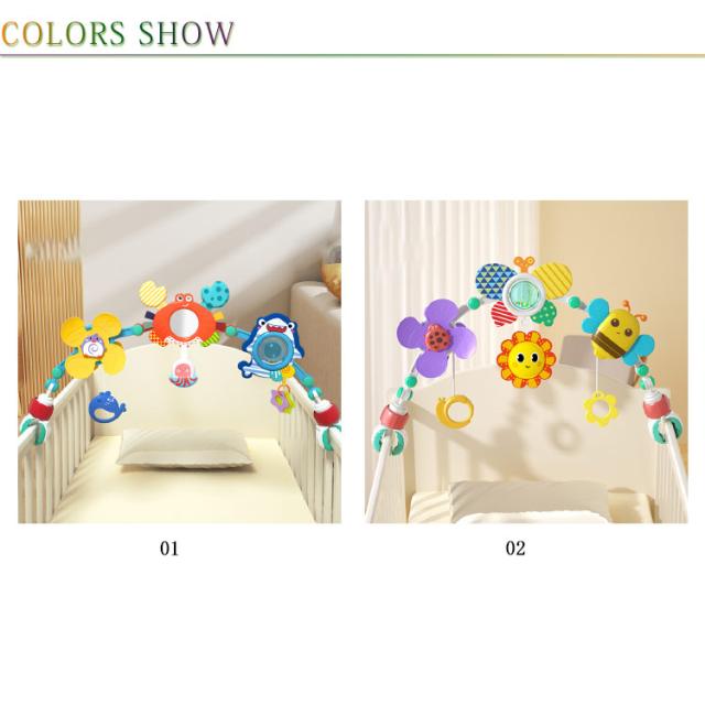 ベッドメリー ぶら下げおもちゃ ベビーカーおもちゃ アーチ型 ガラガラ ベビーおもちゃ 寝かしつけ 知育玩具 ベビーカー用振り子 ハイローチェア ベビーベッド チャイルドシート 取り付け簡単 多機能 室内 屋外 赤ちゃん遊び お誕生日 出産祝い 贈り物