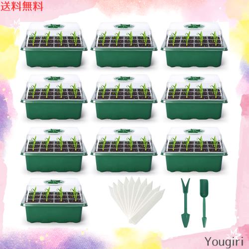 育苗ポット 10個セット 育苗トレイ 育苗箱 12穴 種子トレイ 発芽育苗セット 種まきハウス 苗箱 種まき器 育苗ボックス 透明カバー 便利性