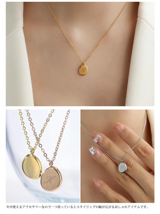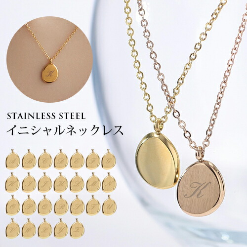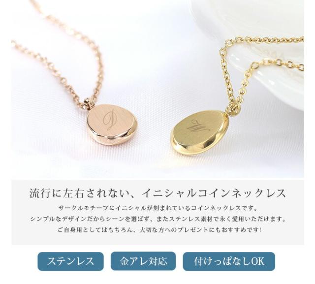 イニシャル コイン ネックレス 3色 ステンレス ペンダント コインネックレス 小豆チェーン シルバー ゴールド