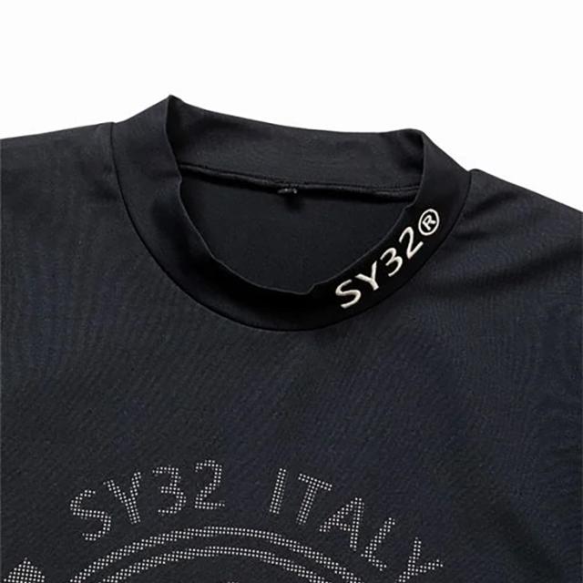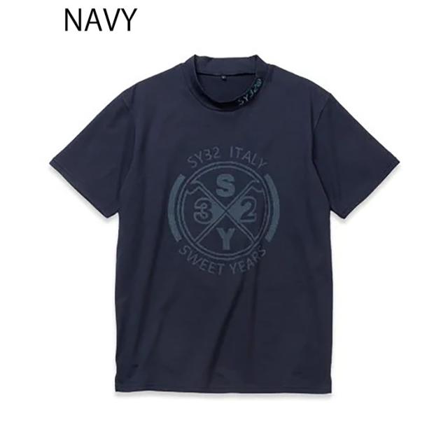 SY32 スウィートイヤーズ メンズ 半袖シャツ ゴルフウェア SY32 BY SWEET YEARS GOLF モックネック ドットプリント ビッグロゴ 吸水速乾 ドライ ストレッチ ゴルフシャツ トップス 男性 紳士用 服 ブランド アパレル/SYG-24SUM-07