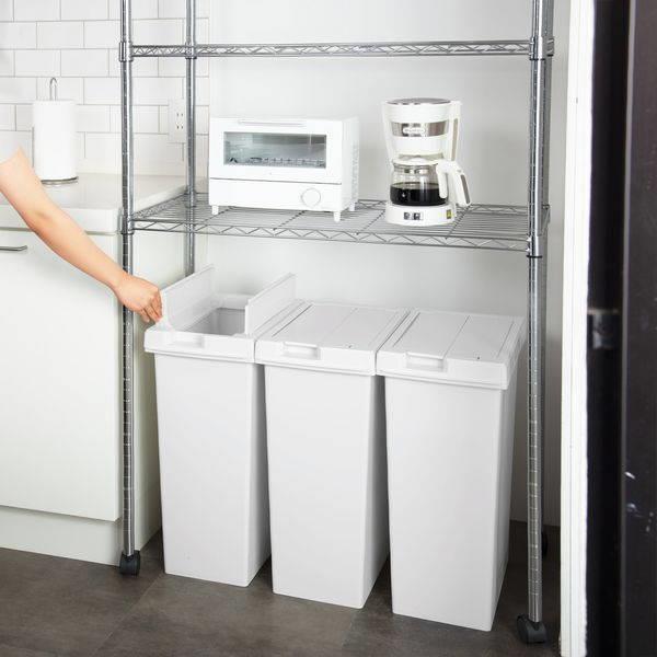 ゴミ箱 ダストボックス 45リットル 45L スリム おしゃれ キッチン 蓋付き分別ゴミ箱 ユニード ホワイトグレー 日本製