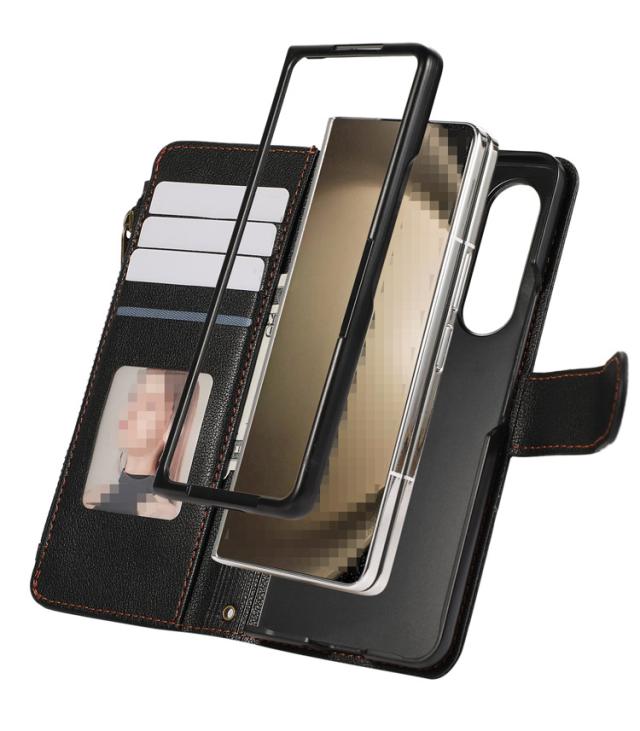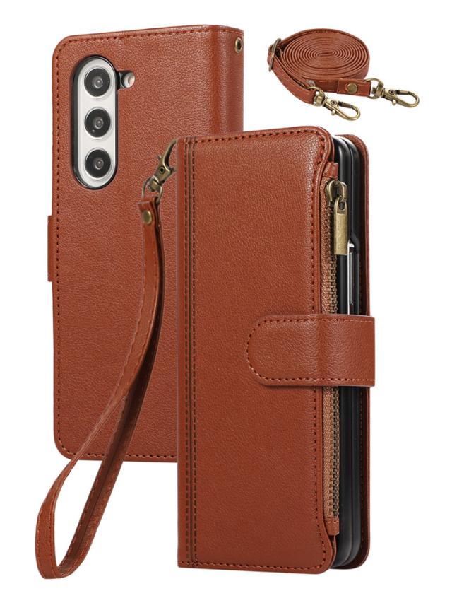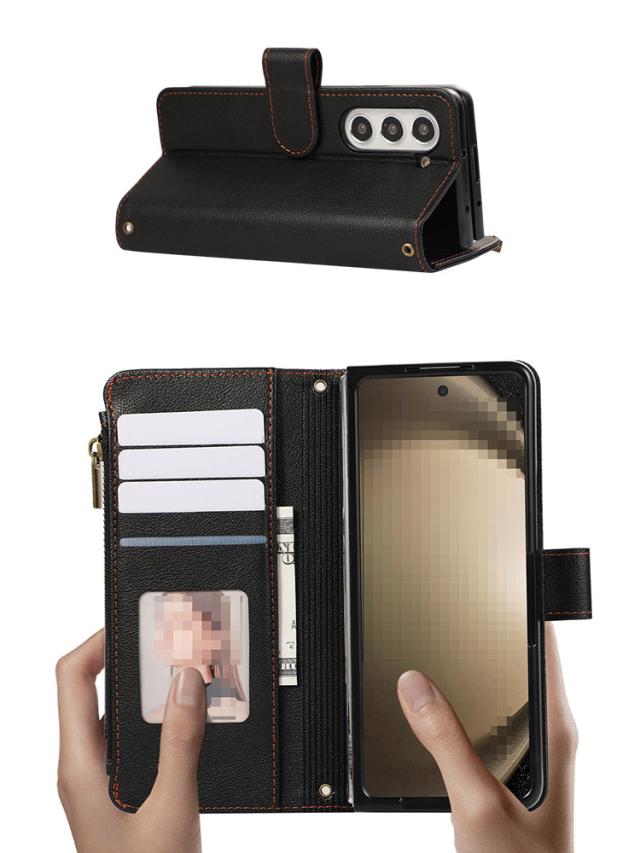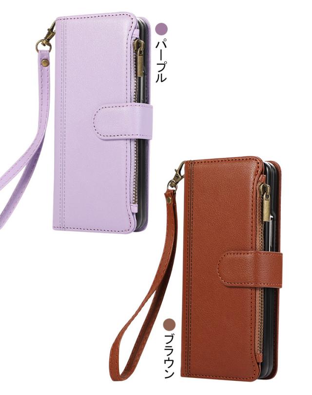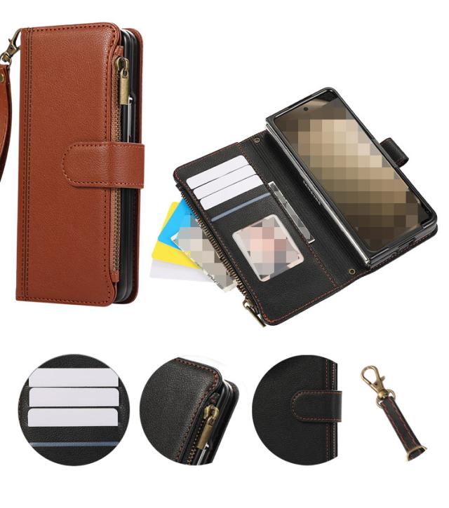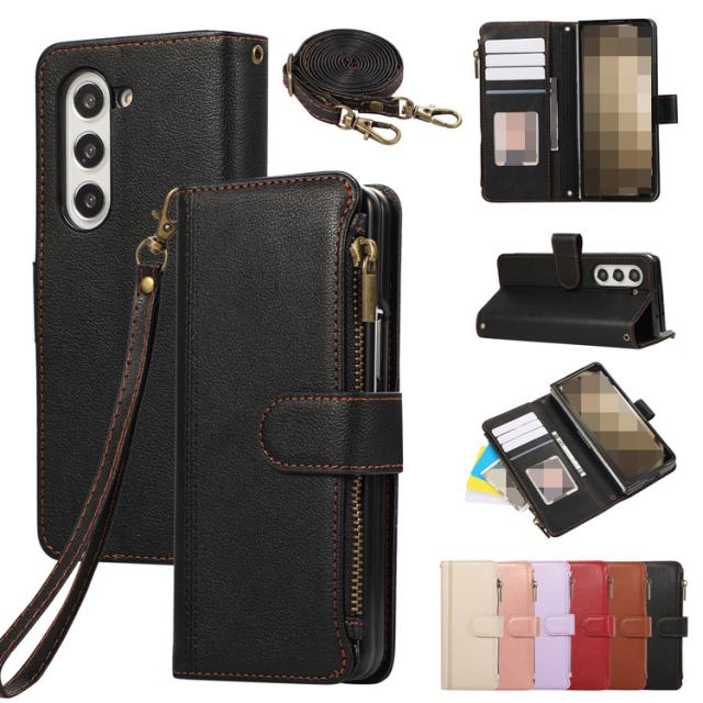Galaxy Z Fold6 ケース スマホショルダー 手帳型PUレザーケース 折りたたみ型 ペン収納 スタンド機能 ファスナー付き カード収納 ストラップ付き 落下防止 ショルダー 肩掛けベルト付き Samsung サムスン ギャラクシー Z フォールド6 アンドロイド カバー