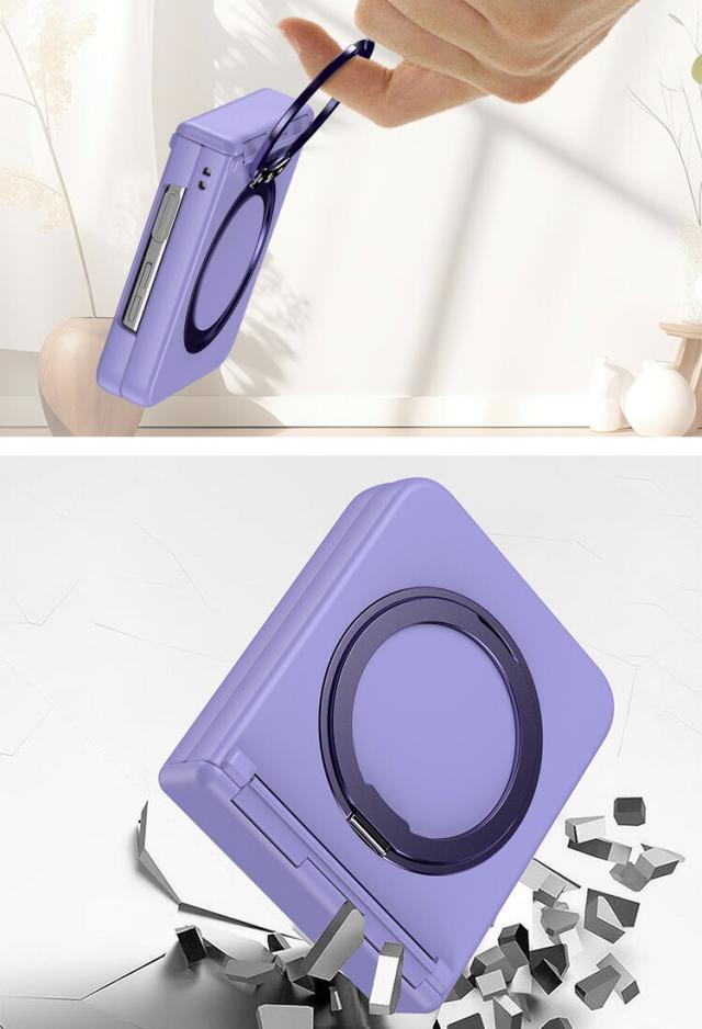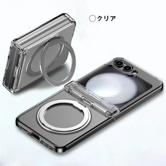 Galaxy Z Flip6 ケース 耐衝撃 カバー 折りたたみ型 一体型リング付き 持ち手 落下防止 片手操作 取っ手 スタンド機能 Samsung サムスン ギャラクシー Z フリップ6 保護ケース ストラップ穴 アンドロイド スマートフォン/スマフォ/スマホケース