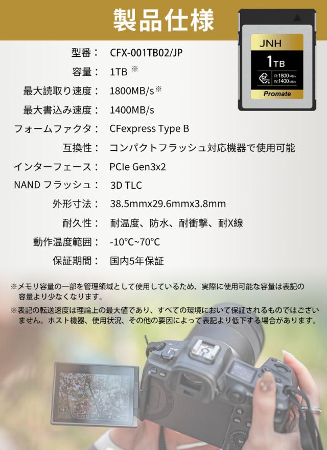 JNH CFexpress Type B メモリーカード 1TB R:1800MB/s W:1400MB/s 8K 4K ビデオ CFX-001TB02/JP 5年保証 CFカード コンパクトフラッシュカード 宅配便配送ポイント消化