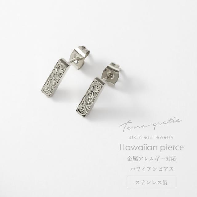 ハワイアンジュエリー ピアス スタッド スクエアデザイン 金属アレルギー対応 ステンレス レディース 両耳 スティールシルバーカラー gess519st