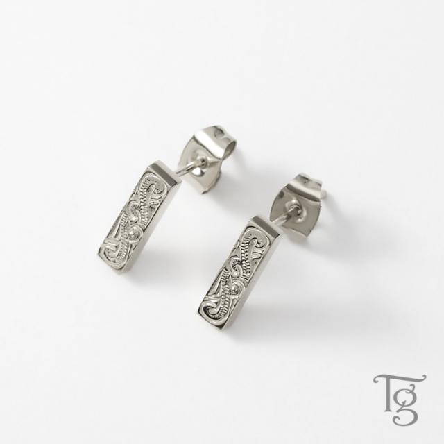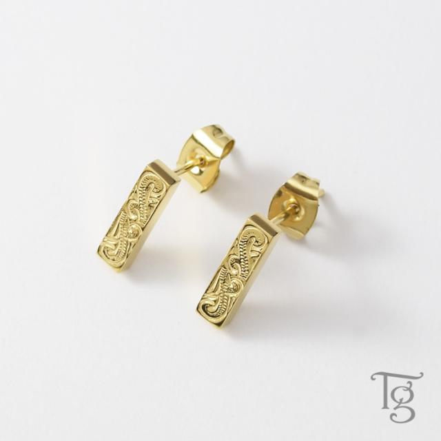 ハワイアン柄が入ったスクエアデザインのスタッドピアス。