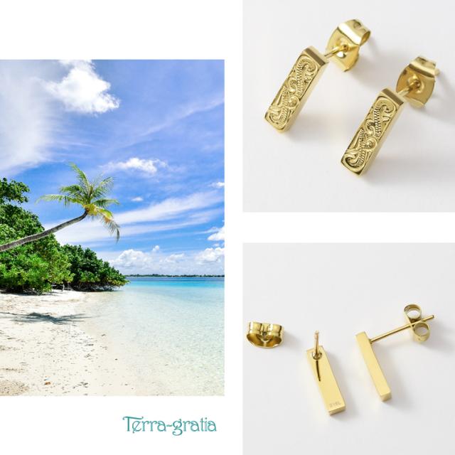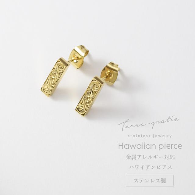 ハワイアンジュエリー ピアス スタッド スクエアデザイン 金属アレルギー対応 ステンレス レディース 両耳 イエローゴールドカラー gess519yg