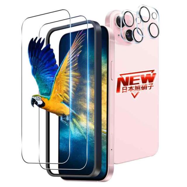 【2+2枚セット ガイド枠付き】 対応 iPhone 15 ガラスフィルム 2枚 + iPhone15 レンズ保護フィルム 2枚 対応 いphone15 フィルム 強化ガラスフィルム ケース 【 硬度9H 日本旭硝子製 】 対応 アイフォン15 保護フィルム キズ防止 耐衝撃 飛散防止 全面保護 3D Touch対応 厚さ0.26 極薄タイプ 高感度タッチ 気泡ゼロ 自動吸着 貼り付け簡単 対応 iPhone 15 フィルム