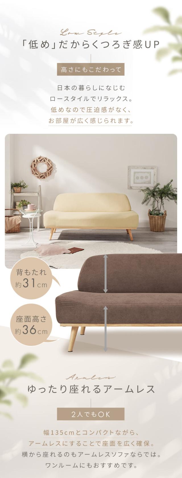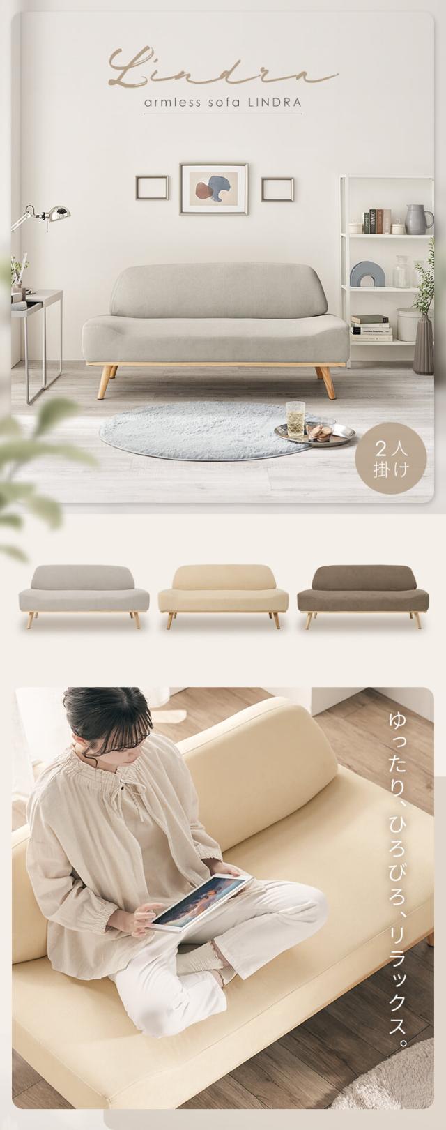 ソファ 家具 二人掛け リンドラ アームレスソファ2P 全3色 ソファ 二人掛け コンパクト 一人暮らし ロータイプ ファブリック ゆったり おしゃれ シンプル デザイン 送料無料