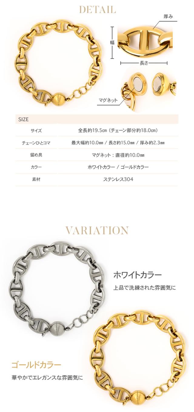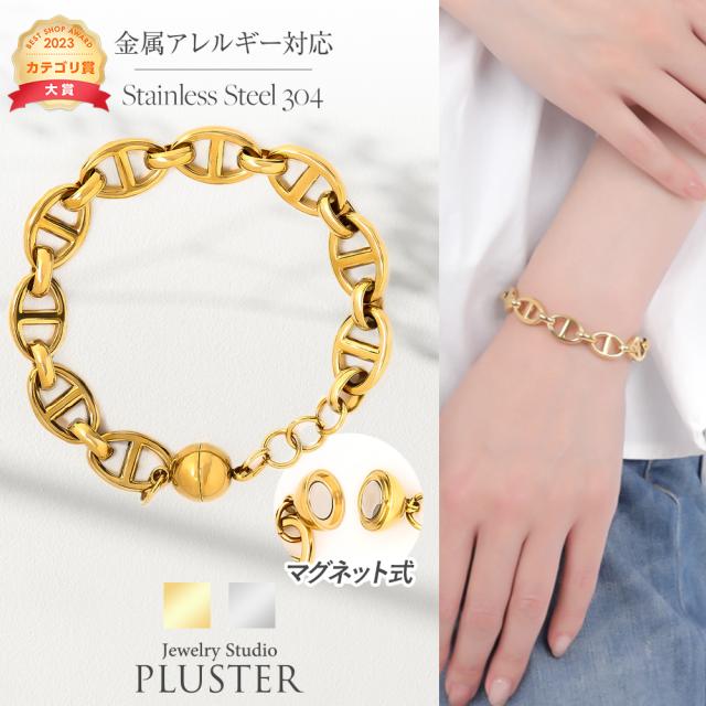 ブレスレット レディース メンズ ゴールド シルバー つけっぱなし 金属アレルギー ステンレス チェーン チェーンブレスレット 留め具 簡単 マグネット 太め シンプル 人気 カジュアル トレンド ジュエリー アクセサリー 誕生日 クリスマス プレゼント 女性 ギフト 錆びない