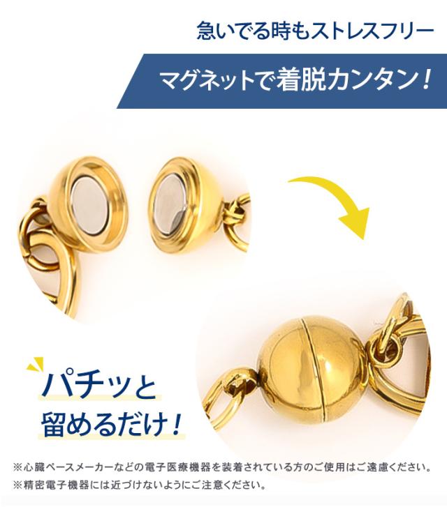 マグネット式で着脱簡単。金属アレルギー対応素材。