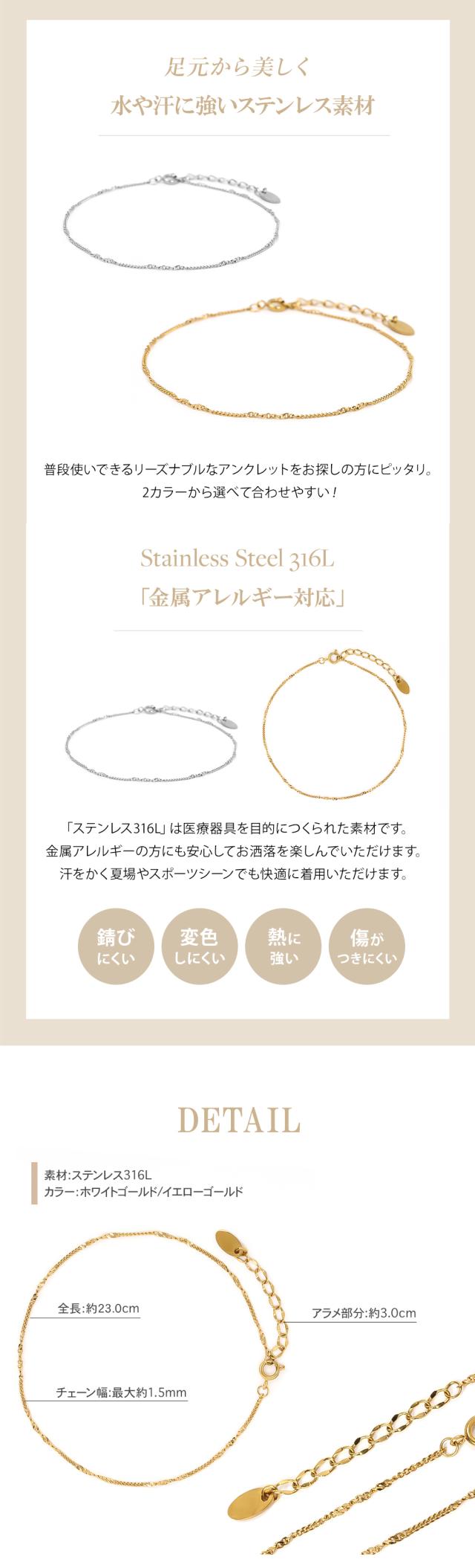 アンクレット レディース 水に強い 金属アレルギー メンズ ペア カップル 足首 男女兼用 海 プール サージカルステンレス ステンレス316l ステンレス つけっぱなし ジュエリー 重ねづけ シンプル 誕生日 クリスマス プレゼント 女性 ギフト 医療用 おしゃれ アクセサリー