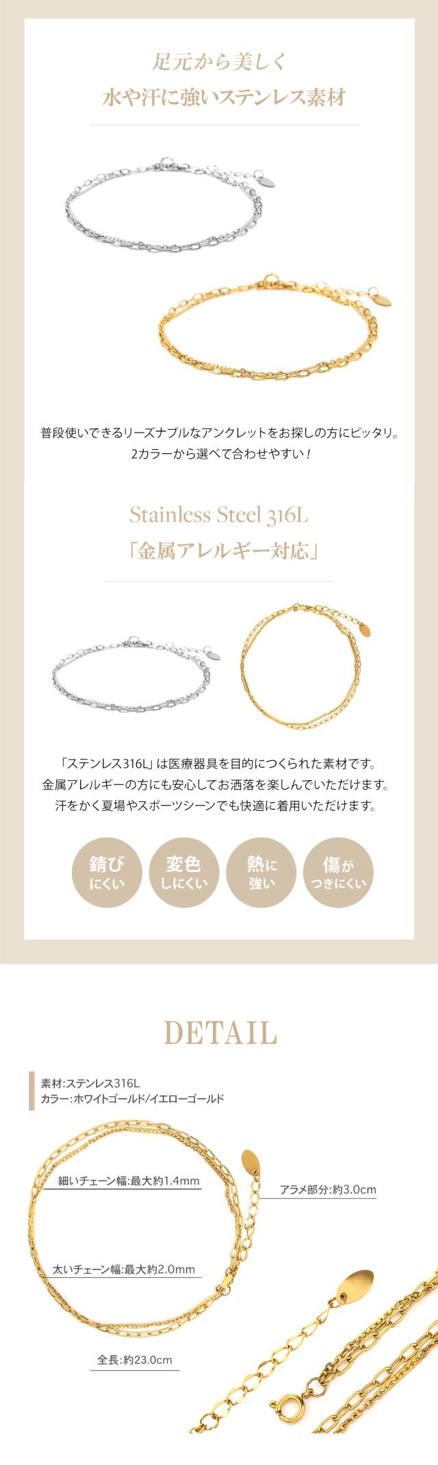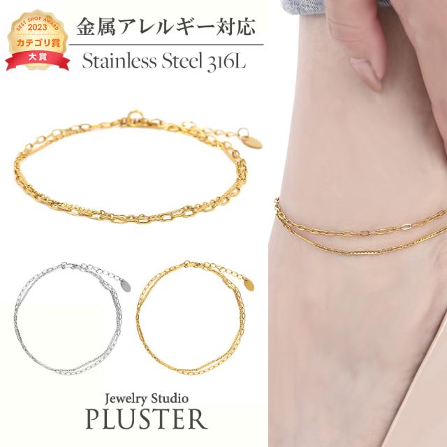 アンクレット レディース 水に強い 金属アレルギー 2連 メンズ ペア カップル 足首 男女兼用 海 プール サージカルステンレス ステンレス316l ステンレス つけっぱなし ジュエリー 重ねづけ シンプル 誕生日 クリスマス プレゼント 女性 ギフト 医療用 アクセサリー